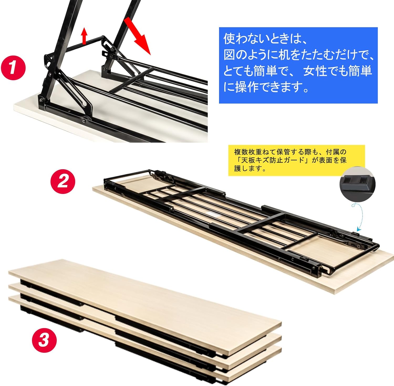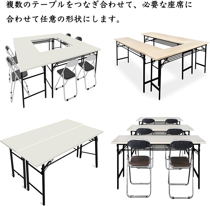 | 商品カスタム項目名3 | 折りたたみ テーブルには幅広い用途があります。会議テーブル、ワークデスク、パソコンデスク、ゲーミングデスク、およびさまざまな作業 台に適用できます。会議やセミナー、講演会などに便利 持ち物棚付きで日常の荷物置きが少なくてすみます。 |