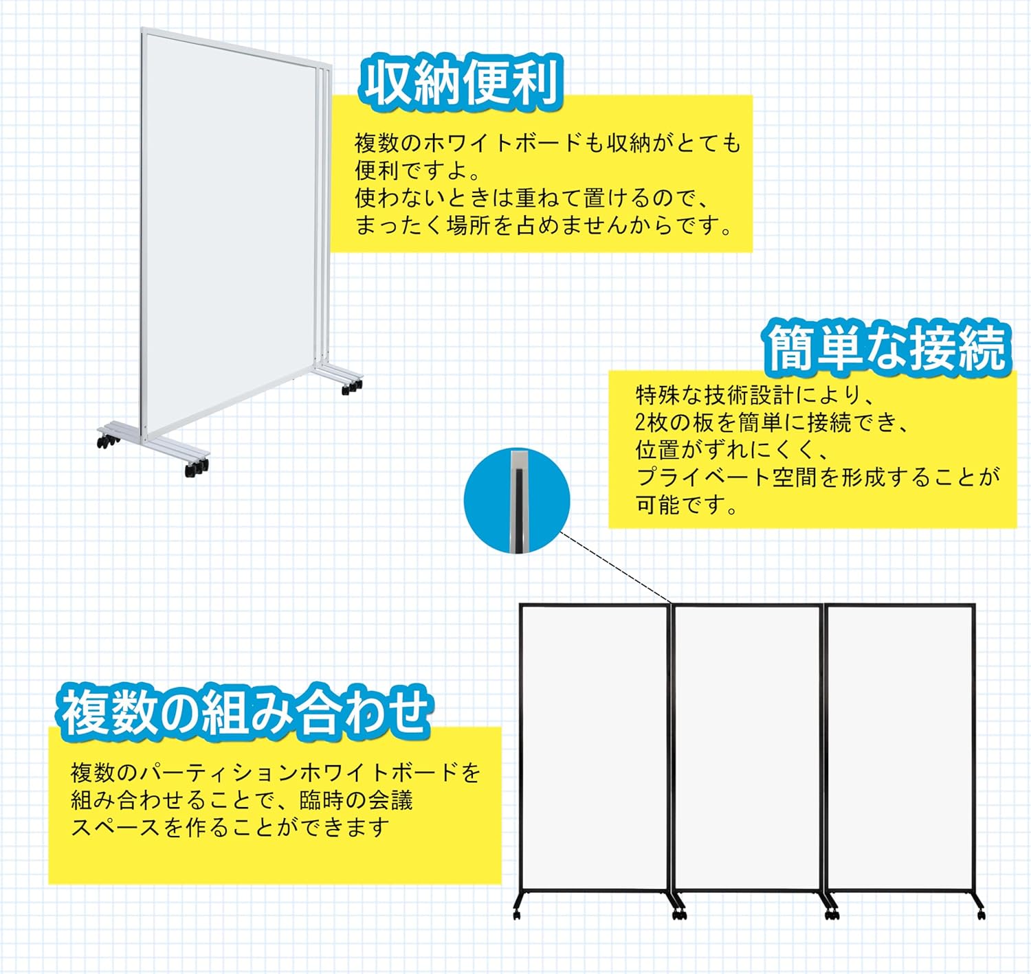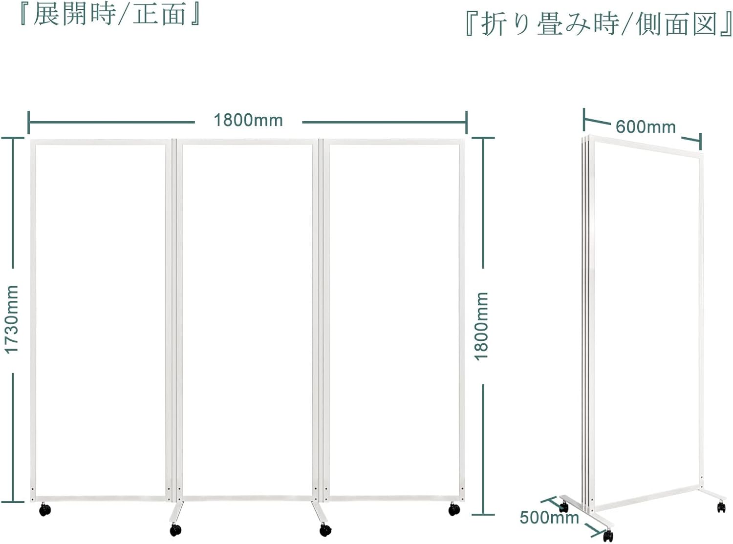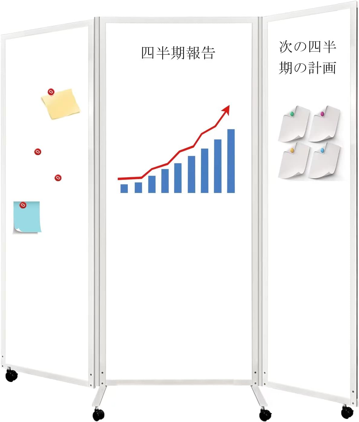 ホワイトボード パーテーション 幅1800mm×奥行500mm×高さ1800mm(折りたたみ パーテーション 600mm*3連)ホワイトフレーム