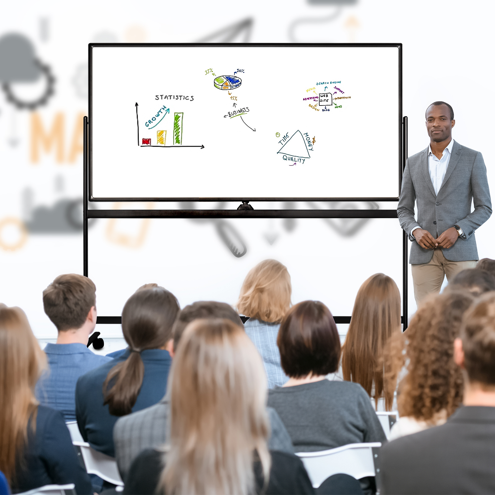 - ホワイトボード 脚付き・両面・ 人間工学に基づいて設計された曲率 キャスター付き・トレイ付き ・イレーザー付き ブラックフレーム