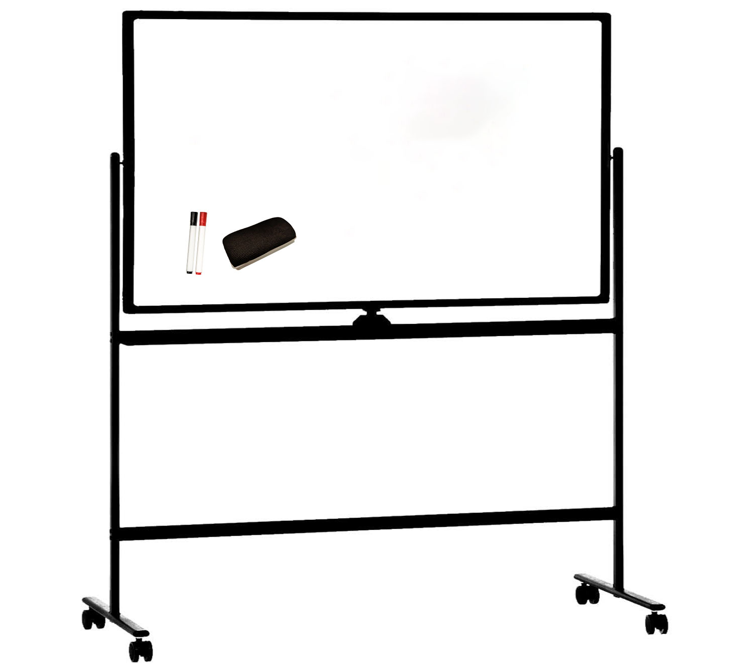 - ホワイトボード 脚付き・両面・ 幅120×高さ80cm 人間工学に基づいて設計された曲率 キャスター付き・トレイ付き ・イレーザー付き ブラックフレーム